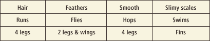 - Students will place each animal in one category by similar characteristics.